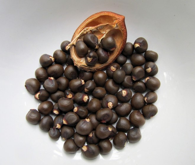 Despite being separate species, telling them apart can be a challenge. Blue flax plants grow from a taproot and woody base and are multistemmed, reaching two to three feet tall. The stems are thin yet stringy, wiry, and not easily torn, which helps explain why flax is such a good plant for making textiles. Short, slender leaves are alternately arranged along the length of the stems, while flower buds form at the ends of stems in loose clusters. Flowers bloom early in the day and are spent by the afternoon. They are 5-petaled, saucer-shaped, and a shade of blue – from whitish blue to deep blue – depending on the plant. Small, round, 10-chambered seed capsules form in the place of flowers, each chamber housing one or two flat, shiny, dark brown seeds. Flowers bloom daily in succession up towards the ends of stems even as the fruits of spent flowers lower on the stalk mature.